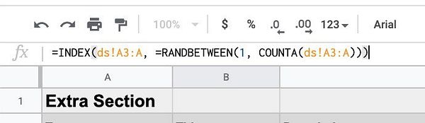 add a random icon pack to the bottom of the page using =RANDOM formula