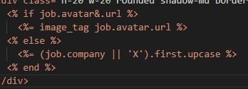 Company logo renders on index & Show page if present, otherwise show company first letter in the box.