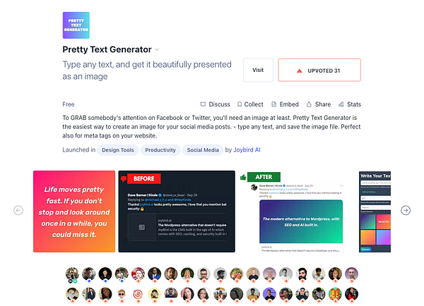 Post a free text generator tool on ProductHunt ->