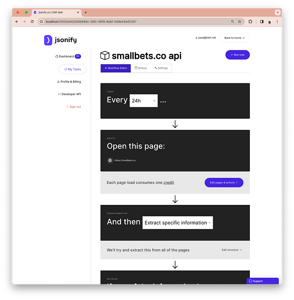 #jsonify UI -- I quite like this flow, though it's still a WIP. As ever, the issue is making it understandable for 'simple' uses, while still letting the power users do their thing.