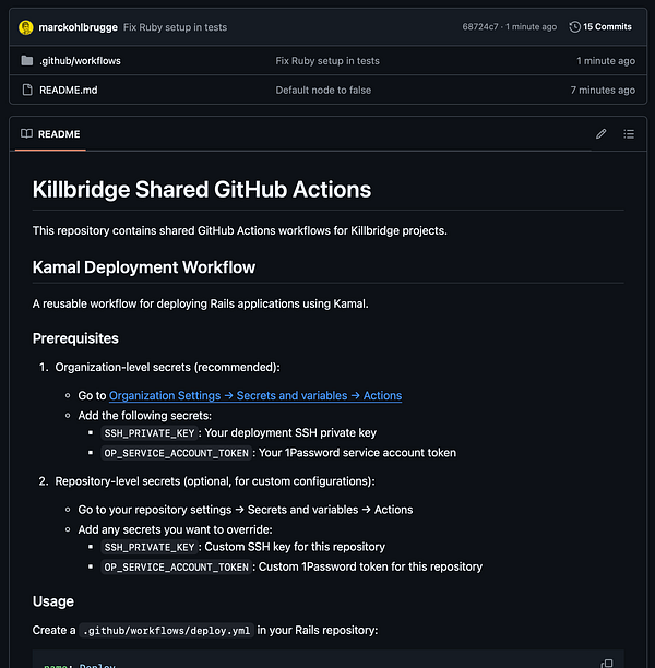 Set up GitHub organization with centralized, re-usable workflows for tests and deploys that I can use across all my different apps