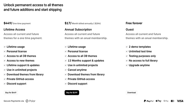 A carefully built collection of fast, easy-to-use templates to help you launch faster. No bloated code or generic design. 34 Themes and feauture additions included, beaituful design, SEO built-in, PagesCMS ready, reusable components.