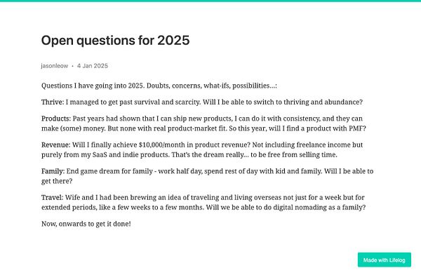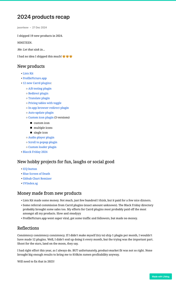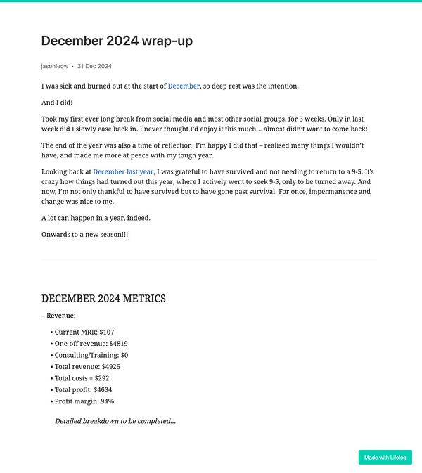 🎉🎉🎉 Lifelog wrapped, 2024 - 🔥 1461 daily streak, 📄 365 posts, 💬 1261 comments