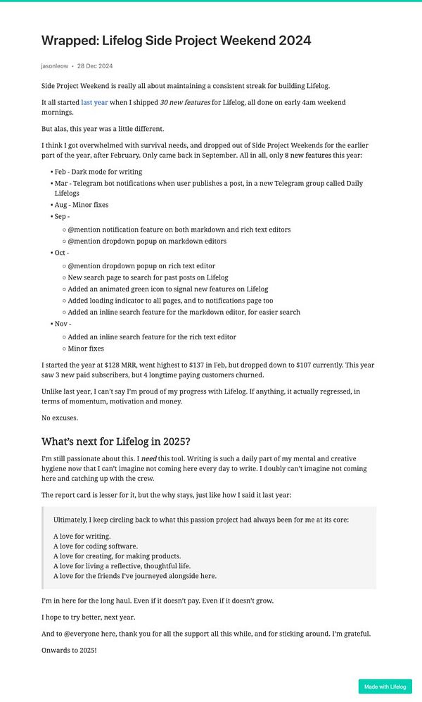 Day 1458 - Wrapped: Lifelog Side Project Weekend 2024 -