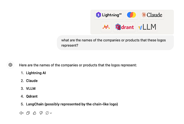 🤯 Super underrated feature of ChatGPT - computer vision. It transcribed the words on the image PERFECTLY that I wanted to use for my writing today. Mindblown. It did well with the corporate logos, of some pretty niche companies (AI).. only got 1 wrong. #listskit