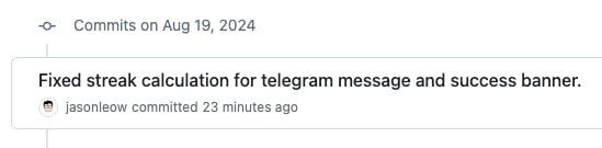 🍟 Side Project Weekend - Deployed fixes for streak calculation for telegram message and success banner