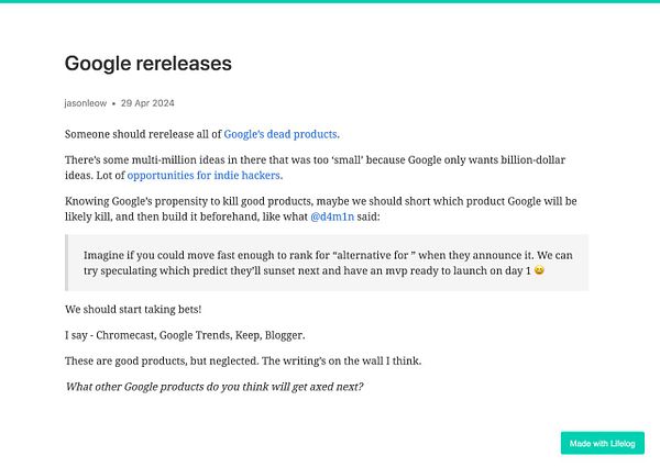 Day 1208 - What kind of products do you see me launching but don't, and why? - golifelog.com/posts/what-kind…
