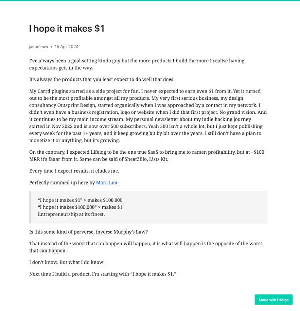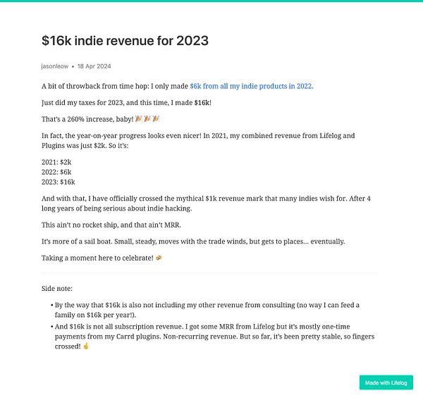 Day 1204 - $16k indie revenue for 2023 - golifelog.com/posts/dollar16k…