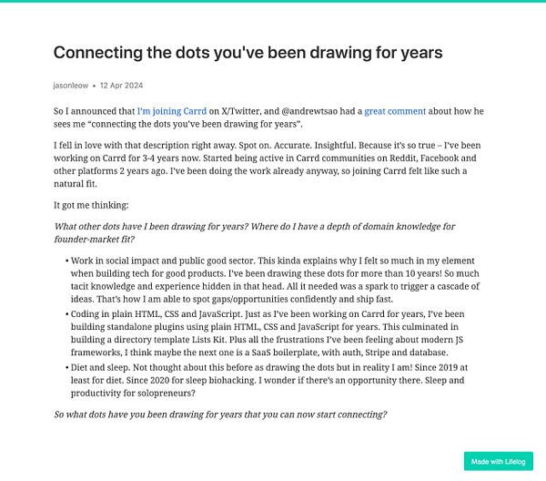 Day 1198 - Connecting the dots you've been drawing for years - golifelog.com/posts/connectin…