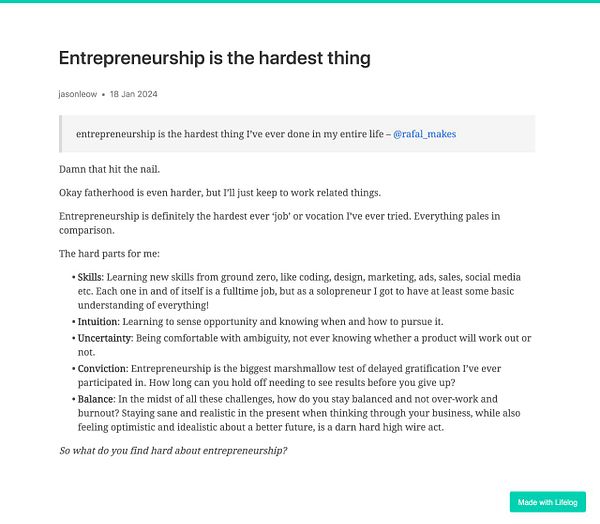 Not done a Twitter thread in a looong while! But felt like I needed to write this down at least for myself - x.com/jasonleowsg/status/1750… #indiejourney