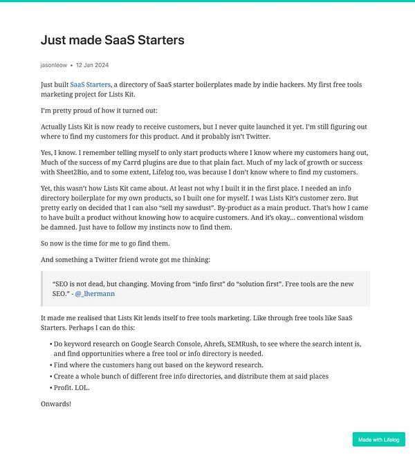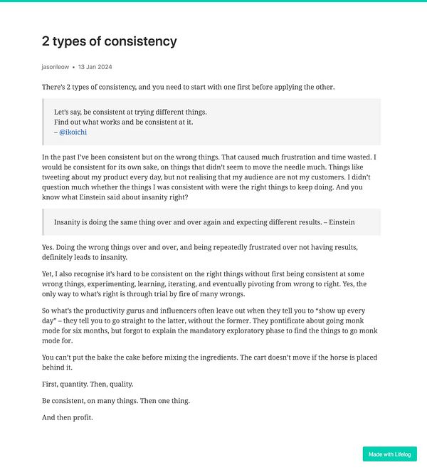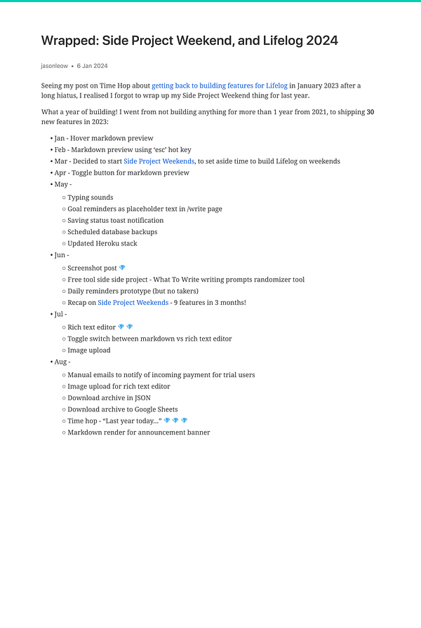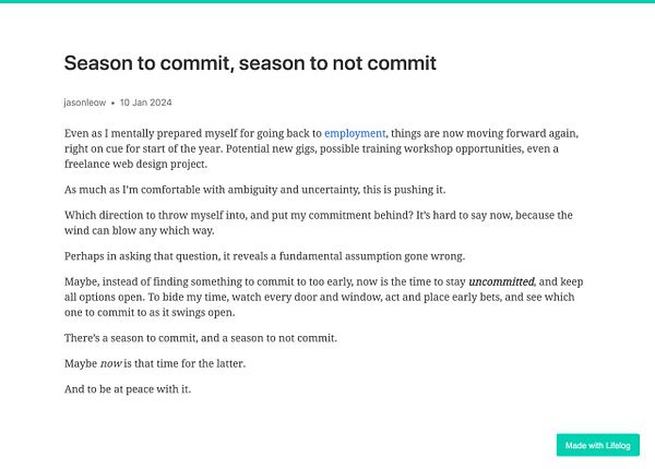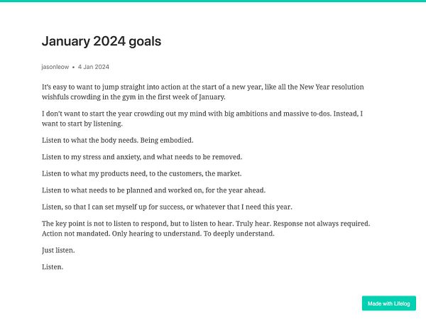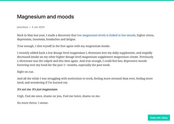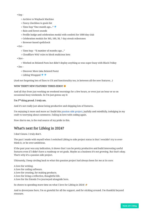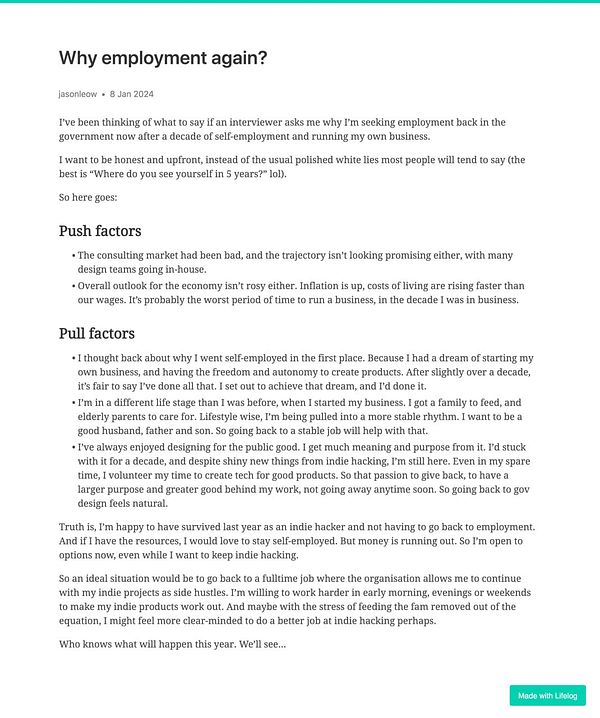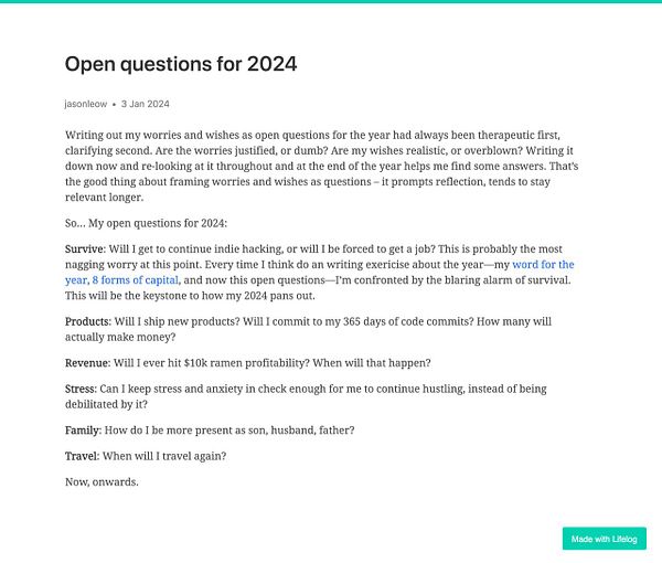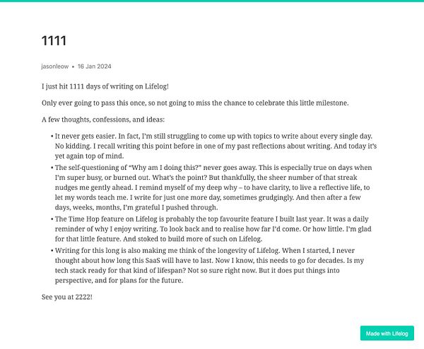 Side note to self: Decided to go with at least 100 words a day now for my daily writing on Lifelog, instead of 200 words a day. 200 was always just an old habit from the previous writing platform. But 100 is the minimum on Lifelog. Not sure why I kept to the old minimum for so long! New year, new habits