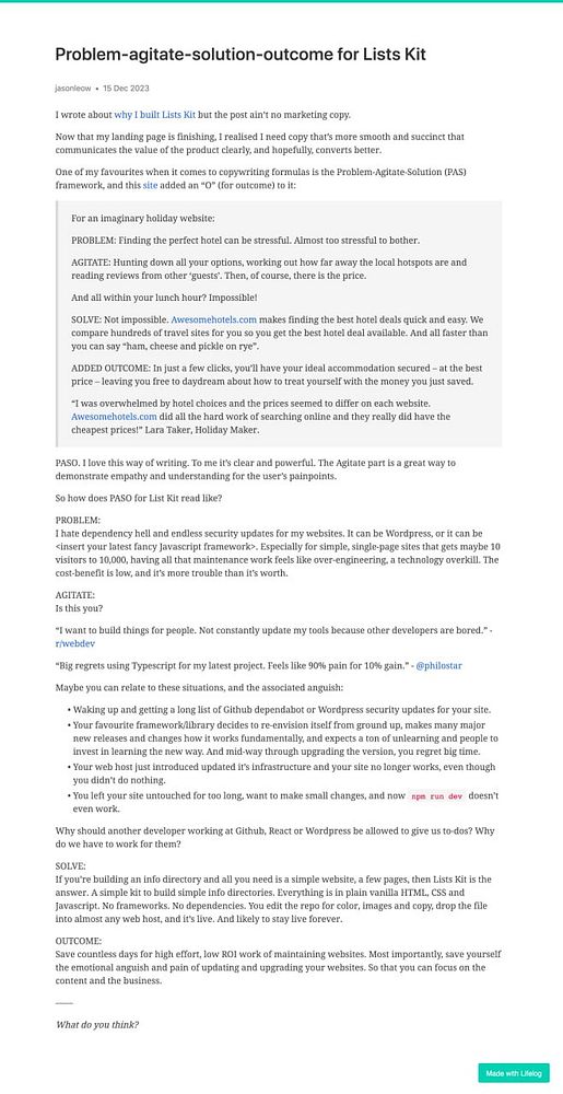 Day 1079 - Problem-agitate-solution-outcome for Lists Kit - golifelog.com/posts/problem-a…