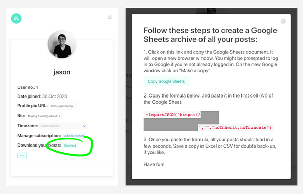 🍟 Side project weekend: Added a way to download an archive of all your posts, via Google Sheets!