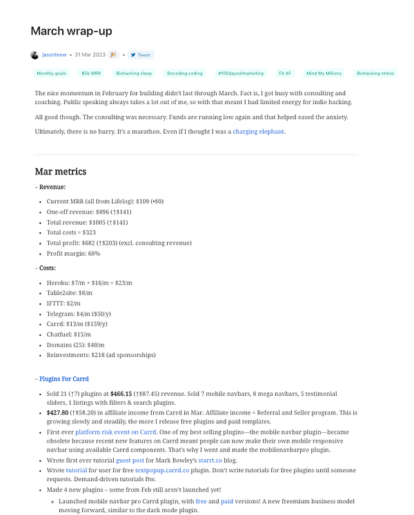 💵💴💶💷 Hit $1005 total revenue for March! First time my revenue went past $1k, without any promos or marketing campaigns! The last time it happened it ($1027) was due to Black Friday sales, in Nov 2022 last year. This time, it grew to that organically. 🤑 #indiejourney