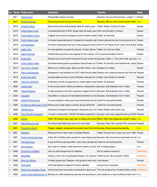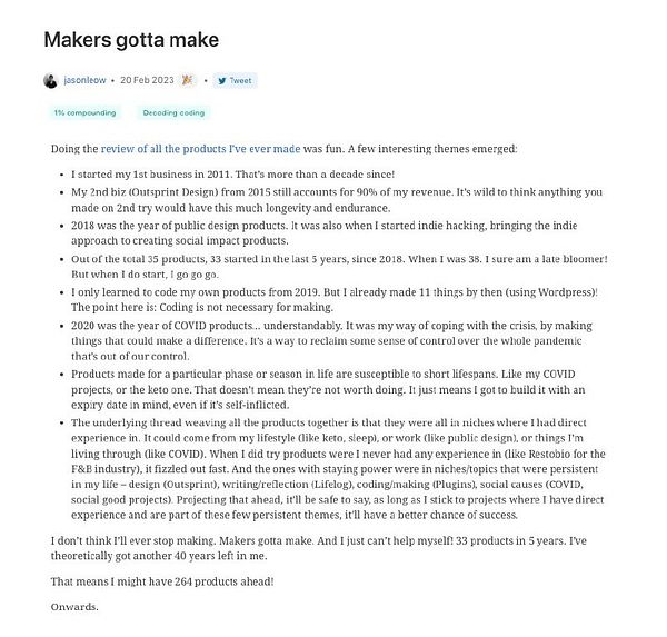 Day 779 - All the products I made - golifelog.com/posts/all-the-p… | A list of everything I've ever made over the years – all 35 of them. And only 3 are still making money currently: - Outsprint - Plugins For Carrd - Lifelog That's a hit rate of only 8.5% for making profitable products. Ship MORE.
