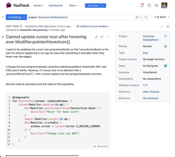 Open a bug report on CMP for not being able to update cursor icon. Blocks from being able to ship drag on resize