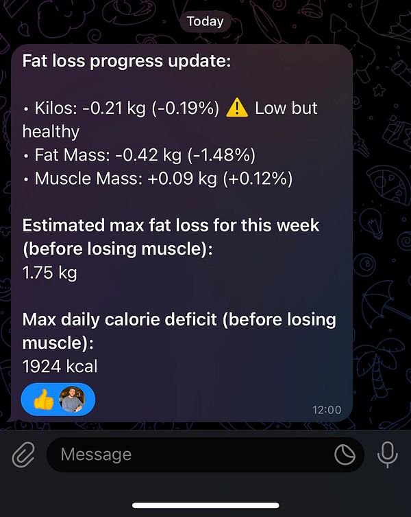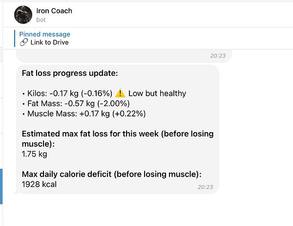 Built a bot that tells me about fat and muscle mass changes per week and other stats