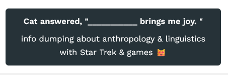 answer the community coworking question of the day. I actually wrote my anthropology course papers on the anthro of Star Trek, video games, and D&D (and on Klingon linguistics 😅