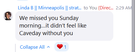 Sometimes I wonder if I just disappeared if my communities would notice, and I got my answer. Another virtual coworker/friend said a similar thing yesterday as well. Feeling the love today and remembering that depression lies.