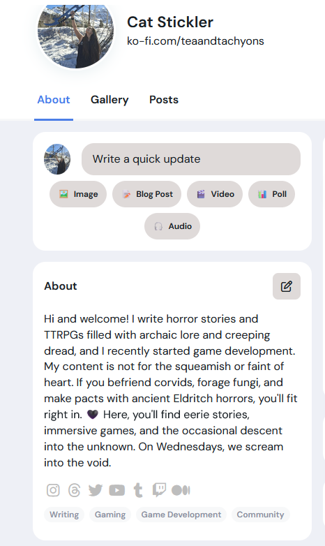 created a ko-fi to share articles, games, spooky lore, and games (& get tips for streams and games)
