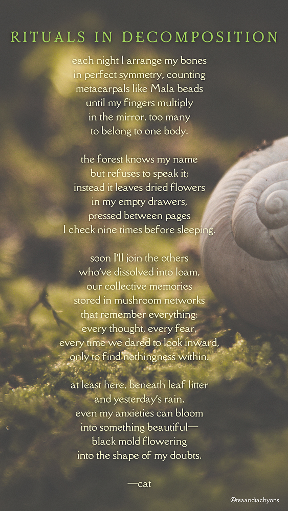 write 3 poems & shakily publish the first on ko-fi. I feel so completely, utterly exposed [If you're curious, the link is in the comments. I'm not just going to bare my soul on the feed 😂)