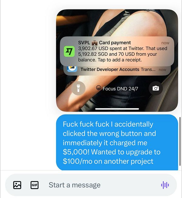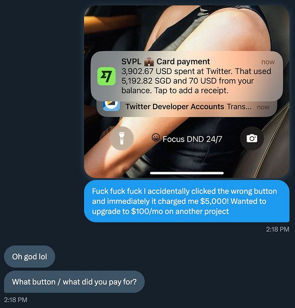 accidentally upgrade to $5,000/mo X API because it's literally 1 click button jfc