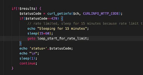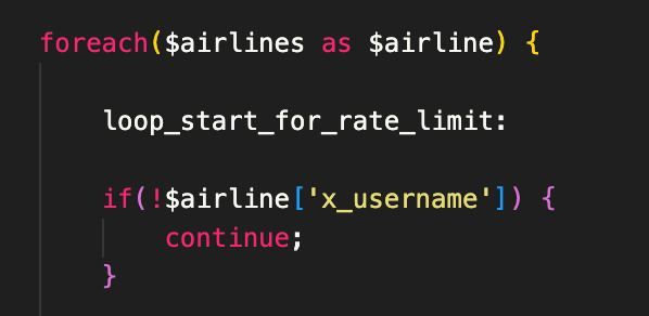 use goto in PHP to re-do airline search when rate limited by X like some maniac