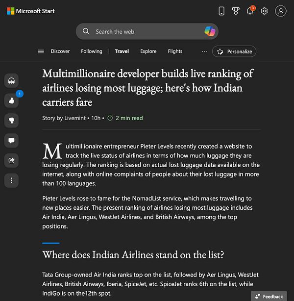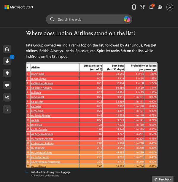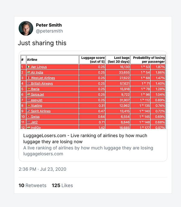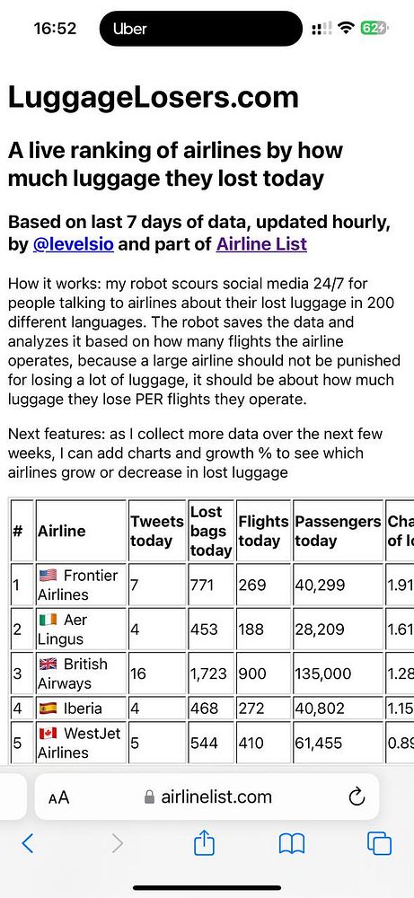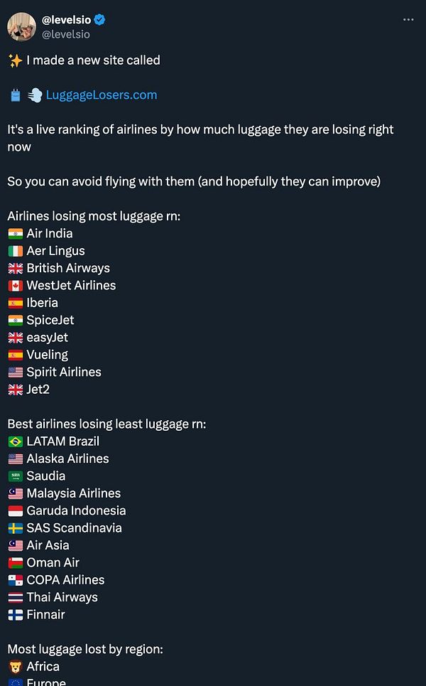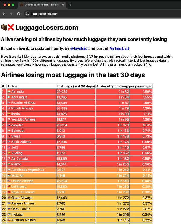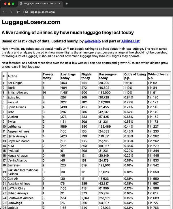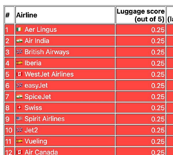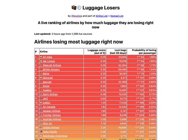 A live ranking of airlines by how much luggage they