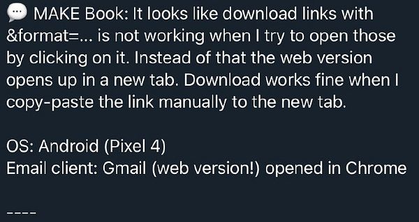 purchase email because Android Gmail has trouble with the &format= stuff