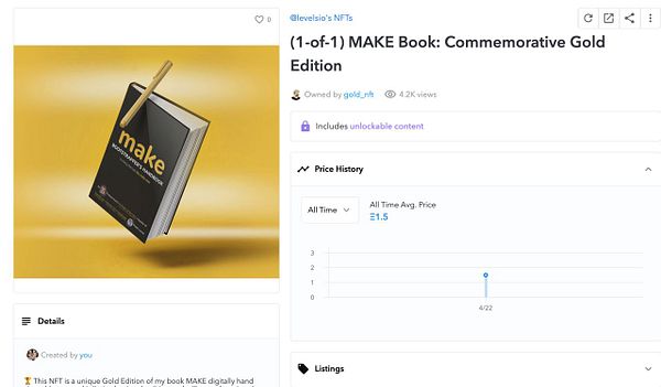 #readmake, sell for 1.5 ETH + 10% trade fee = $3,885 - OpenSea fees = $3,280 opensea.io/assets/0x495f94727…