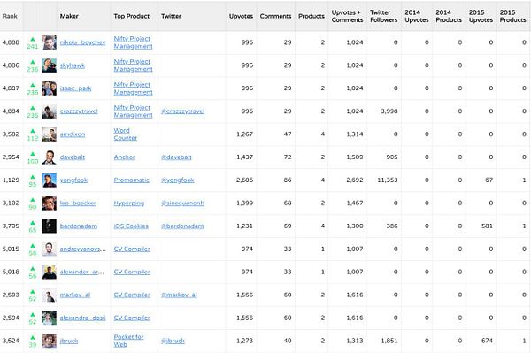40,414,892 data points on millions of makers, ranked.