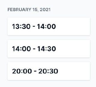 #acnh Build tool that figures out available spots based on prior bookings with a half-hour buffer each