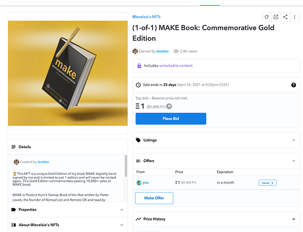 🖼 first NFT bid on @levelsio's experiment