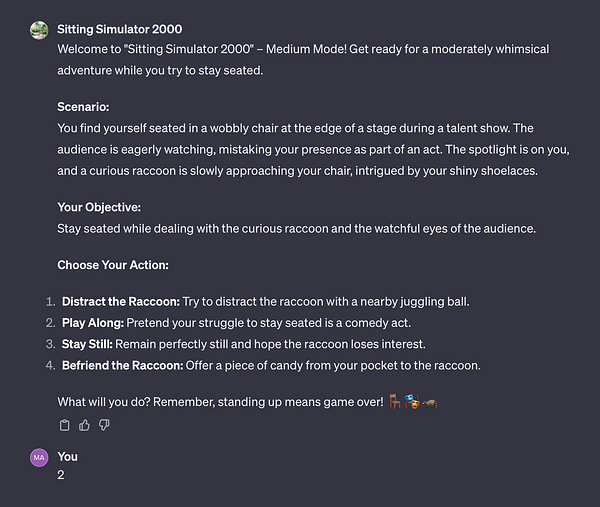 Make Sitting Simulator 2000 GPT inspired by @levelsio game