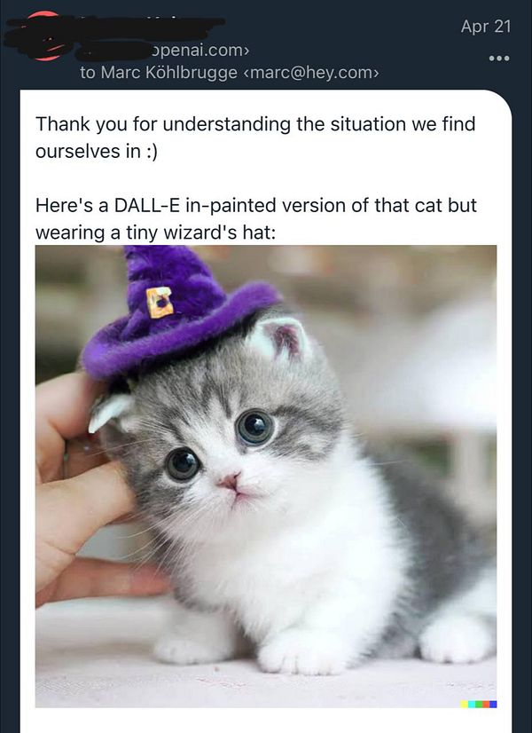 Get cute artificially photoshopped cat picture instead of DALL-E invite