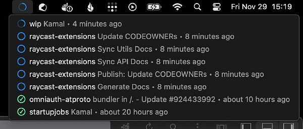 Make Raycast extension to see recent GitHub Workflow runs in menubar (to see if recent deploy attempts failed/succeeded/etc)
