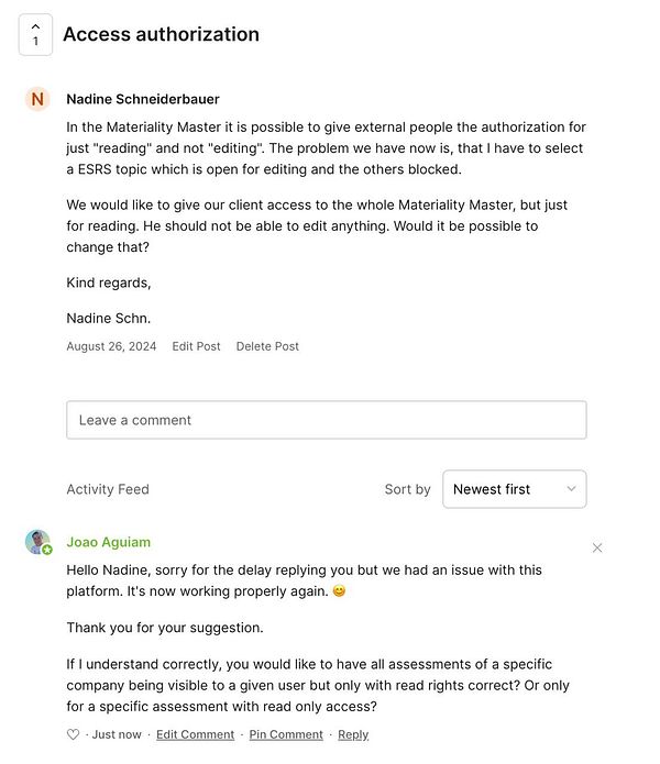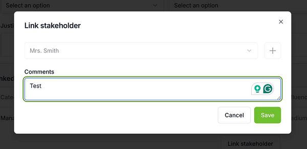 Added the possibility to add comments to the linked stakeholders in