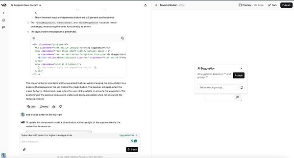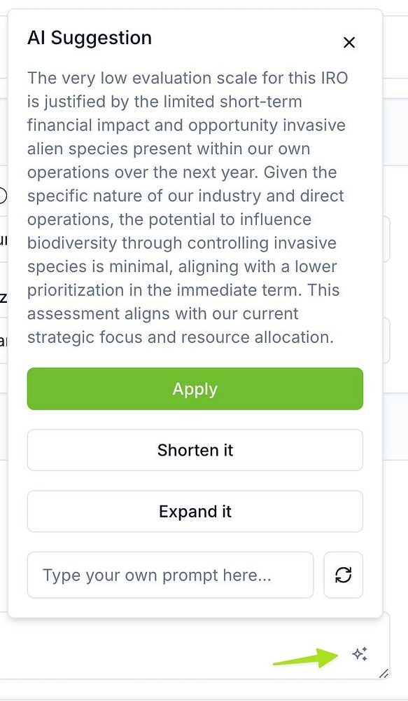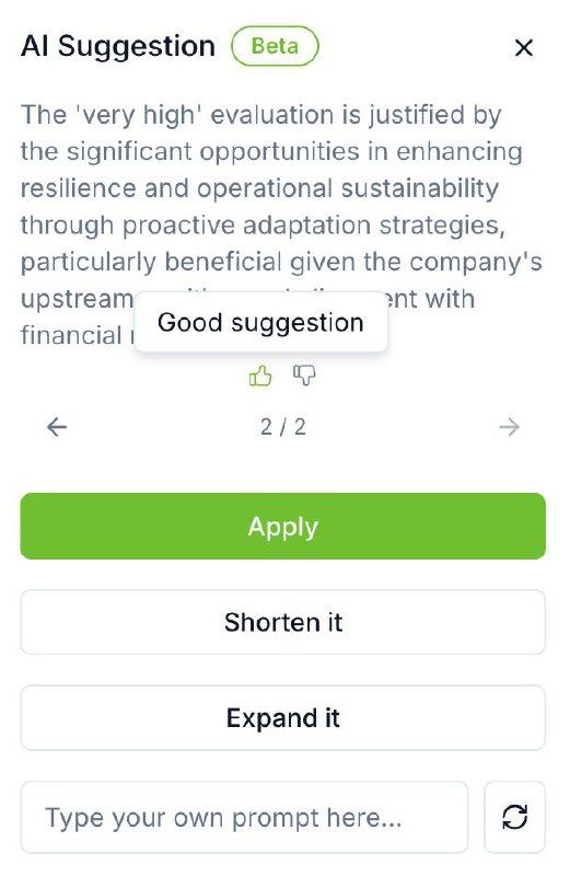 Implemented an AI assistant widget for the text areas to help users complete their justification fields