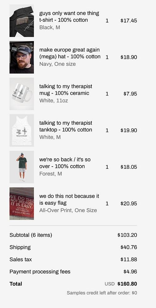 price t-shirts at $50, hats at $50, mugs at $50, hoodies at $75, flags at $50 to increase profit margin
