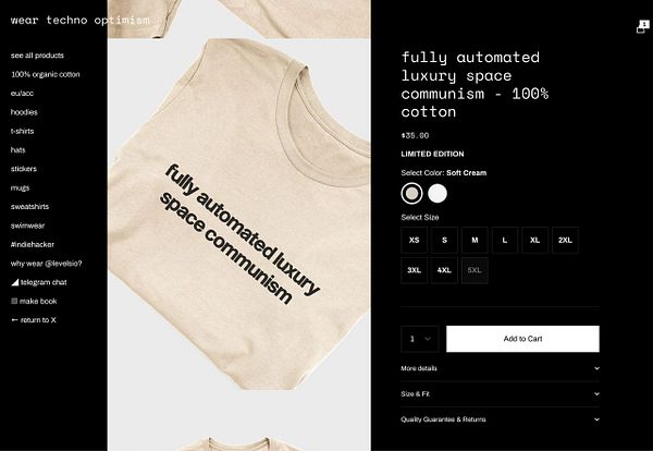 Try start a techno optimist fashion brand