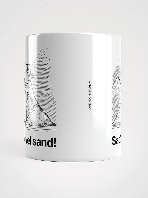 make "sad? shovel sand!" mug from dad's famous quote