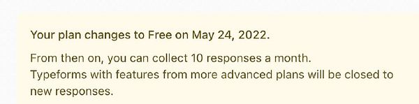 downgrade typeform plan because it auto-renewed and they don’t let you cancel without filling in a survey