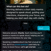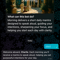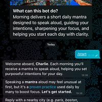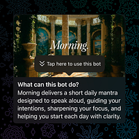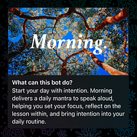 Morning is a free Telegram bot that delivers a daily mantra to help you start your day with intention. Speak the mantra aloud, reflect on its lesson, and build mindful habits.