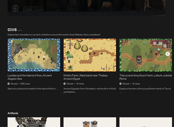 make greek, roman, and egyptian farm simulations with characters managed by GPT-4o and launch on homepage to test