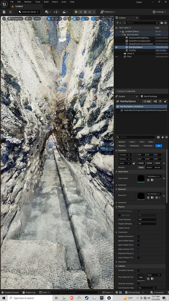test a bunch of options with laserscan data, pointcloud, mesh, etc and get a workflow into unreal, make some renders for PBS doc