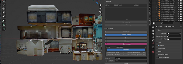 convert museum panos & 3d scan data to obj, then bake textures & compress as glb