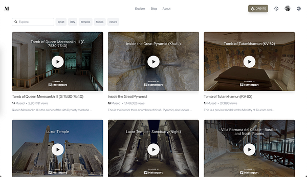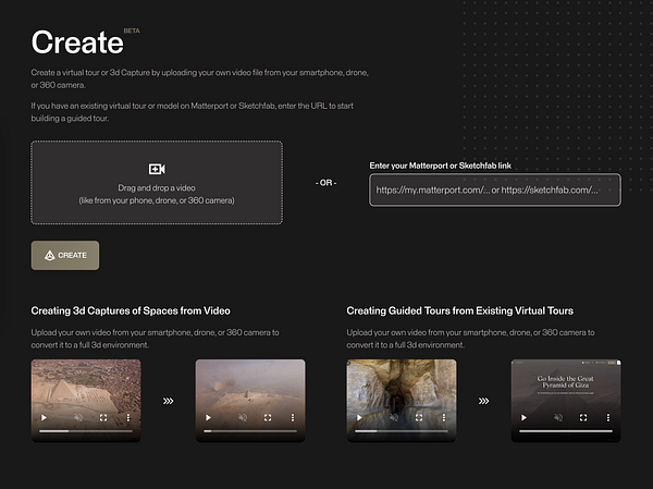 wip new homepage focusing on create cta & virtual tourism