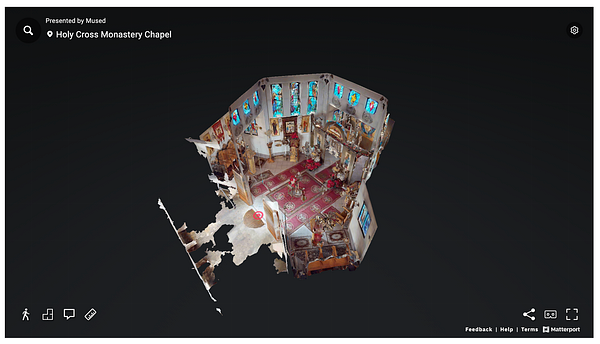 see results Matterport v Sketchfab my.matterport.com/show/?m=kZd… sketchfab.com/3d-models/space… and process monastery chapel photogrammetry