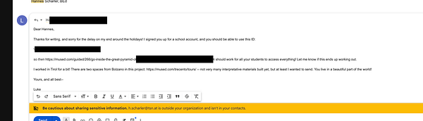 manually setup a school account for a school in Tyrol, Italy that wrote to me
