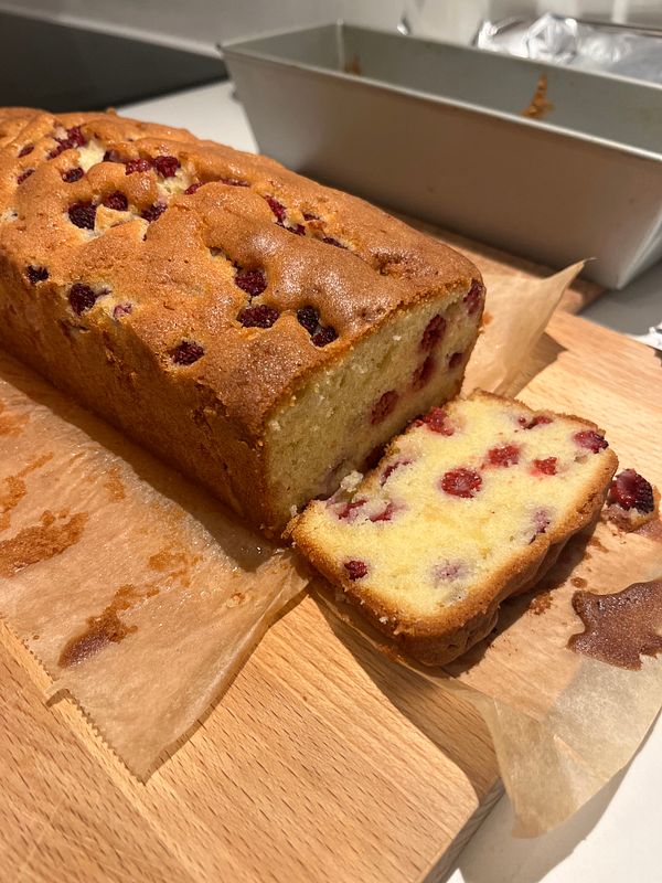 Bake cake with Japanese wineberry from garden